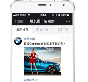 查看詳情>朋友圈廣告將會通過微信廣告系統(tǒng)進行投放和管理,廣告本身內(nèi)容將基于微信公眾賬號生態(tài)體系, 以類似朋友的原創(chuàng)內(nèi)容形式進行展現(xiàn),在基于微信用戶畫像進行定向的同時,依托關系鏈進行互動傳播。